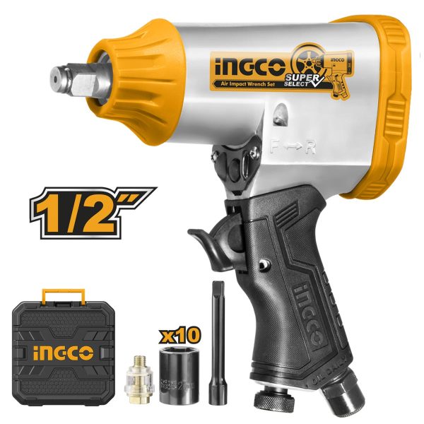 Περιεχόμενα συσκευασίας 10ml Λάδι μηχανής, 1 τεμ. Προσαρμογέας, 10 τεμ. Καρυδάκια: 9-10-11-13-14-17-19-22-24-27mm, 4 τεμ. Αεροσυνδέσμους όλων των τύπων. Πλαστική βαλίτσα.