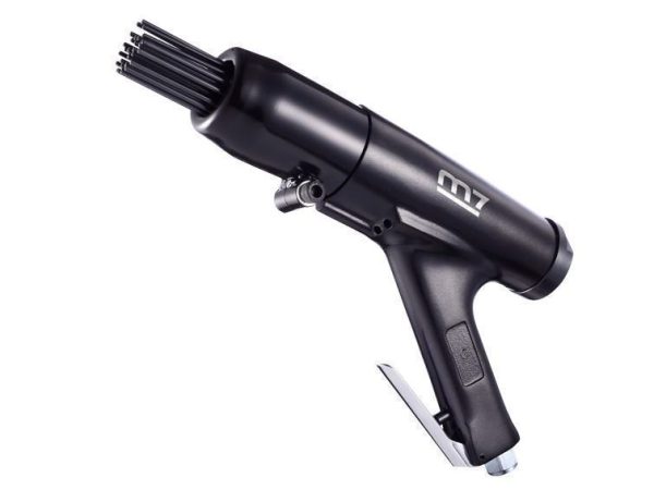 Ματσακόνι αέρος πιστολέ, βαρέως τύπου. Κατάλληλο για χρήση στη ναυτιλία, στις επισκευές κατασκευών και μεγάλων οχημάτων. Κατασκευασμένο για πολύωρη, επίπονη χρήση, τα εσωτερικά του μέρη είναι ειδικά σκληρυμένα για την αύξηση της διάρκειας ζωής του εργαλείου. Περιλαμβάνονται 28 βελόνες 3*180mm. Τεχνικά χαρακτηριστικά Μέση κατανάλωση αέρος 198Lt/min Πίεση λειτουργίας 6,3bar Ολικό μήκος 335mm Βάρος 2,8Kg Διατομή σωλήνας αέρος 10mm Επίπεδο θορύβου 100dBa Επίπεδο κραδασμών 8,1 (m/s²) Κρούσεις ανα λεπτό 3500 Διαδρομή εμβόλου 28mm