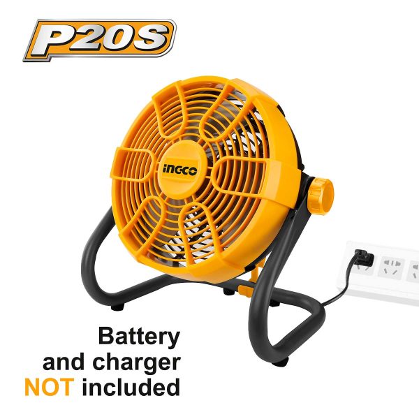Λεπτομέρειες προϊόντος SOLO (χωρίς μπαταρία και φορτιστή) Τάση 220-240V με ηλεκτρικό ρεύμα 2 Ταχύτητες λειτουργίας Διάμετρος ανεμιστήρα 280mm (11") Περιστροφή 0-360° Κεφαλή πολλαπλών θέσεων Λειτουργεί και με ηλεκτρικό ρεύμα. (Το καλώδιο βρίσκεται στη συσκευασία)