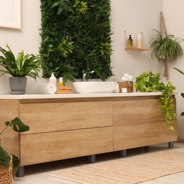 Πλακίδιο τεχνητής φυλλωσιάς από ανθεκτικό πλαστικό, υψηλής πλέξης, ιδανικό για την διακόσμηση και επένδυση επιφανειών.
