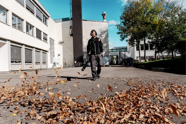 Ισχυρός, αθόρυβος ανεμιστήρας για γρήγορη αφαίρεση φύλλων και ρύπων από πλατείες και μονοπάτια.
