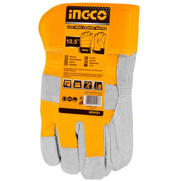 Γάντια εργασίας Ingco από δέρμα μόσχου. Εξαιρετική άνεση και εφαρμογή. Μπορούν να χρησιμοποιηθούν σε βιομηχανία, γυαλί, αλιεία, γεωργία, κατασκευές και βιομηχανία κόντρα πλακέ, την αποχέτευση, τη γενική συντήρηση. Ενισχυμένα στην παλάμη και με αντοχή στις φθορές.