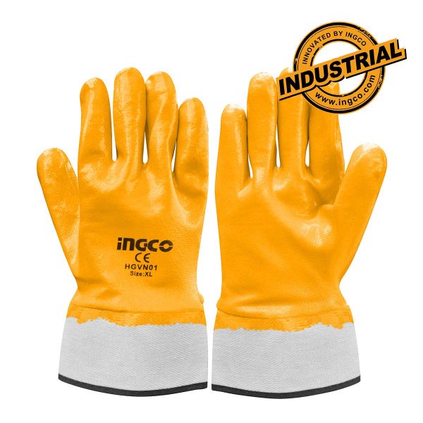 Λεπτομέρειες προϊόντος Γάντια εργασίας χωρίς ραφές με πλήρη επικάλυψη νιτριλίου. Ιδανικά για βαριά χρήση και ειδικότερα για καύσιμα και λάδια. Κατάλληλα για σκληρές εργασίες, όπως στην οικοδομή και στη βιομηχανία.