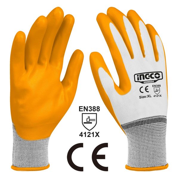 Λεπτομέρειες προϊόντος Γάντια εργασίας χωρίς ραφές με επικάλυψη νιτριλίου στην παλάμη και στα δάχτυλα για τέλειο κράτημα. Ελαστική μανσέτα για τέλεια εφαρμογή στον καρπό. Ιδανικά για όλες τις χρήσεις.