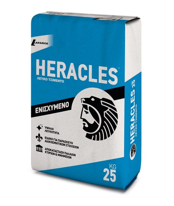 Το HERACLES ΕΝΙΣΧΥΜΕΝΟ ΛΕΥΚΟ ΤΣΙΜΕΝΤΟ είναι τσιμέντο υψηλής λευκότητας και εργασιμότητας, ειδικό για παρασκευή διακοσμητικών στοιχείων, λευκού σοβά και την αποκατάσταση παλαιών κτιρίων και μνημείων.