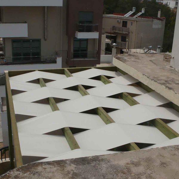 Τεντόπανο σε λωρίδες, αρίστης ποιότητας, 100% αδιάβροχο και αυτό – πλενόμενο. Τόπι διαστάσεων 10μ. ή 20μ., ανάλογα με την διάσταση της πέργκολας.