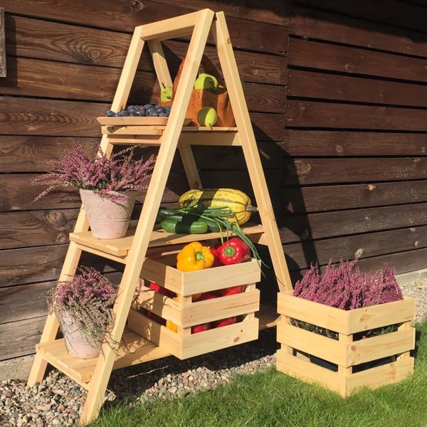 Η ξύλινη σκάλα αποτελεί μια ιδιαίτερη διακοσμητική ιδέα, καθώς μπορείτε να τοποθετήσετε, προϊόντα, γλάστράκια, διακοσμητικά, βιβλία.