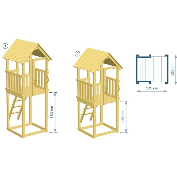 Το ύψος στο σημείο που τοποθετείται η τσουλήθρα είναι 120εκ. και 150εκ.(εξαρτάται από τον πύργο που θα επιλέξετε). Για το ύψος 120εκ. επιλέγετε την τσουλήθρα REX στην απόχρωση που επιθυμείτε. Για το ύψος 150εκ. επιλέγετε την τσουλήθρα TSURI στην απόχρωση που επιθυμείτε.