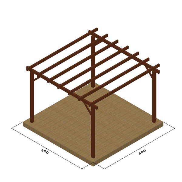 ΠΕΡΓΚΟΛΑ 400×400εκ. Κολώνες στήριξης 12×12εκ., Κεντρικοί δοκοί 6×14εκ., Τεγίδες (παράλληλοι δοκοί) 6×12εκ., Αντηρίδες (μόνο σε αυτόνομη πέργκολα) 4,5×9,5εκ,