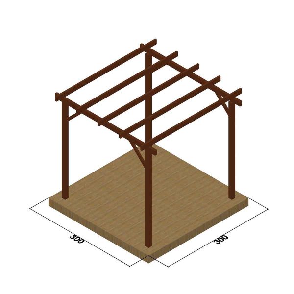 ΠΕΡΓΚΟΛΑ 300×300εκ. Κολώνες στήριξης 10×10εκ., Κεντρικοί δοκοί 6×12εκ.,Τεγίδες (παράλληλοι δοκοί) 4,5×12εκ., Αντηρίδες (μόνο σε αυτόνομη πέργκολα) 4,5×9,5εκ.
