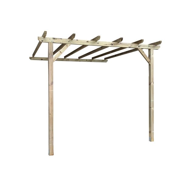 Η ξυλεία που χρησιμοποιείται για την κατασκευή της ξύλινης πέργκολας είναι πλανισμένη και εμποτισμένη ξυλεία Πεύκης (εμποτισμένη σε κενό υπό πίεση), Φινλανδικής προέλευσης.