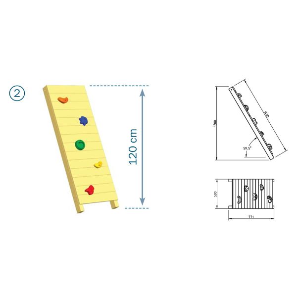 Ξύλινος τοίχος αναρρίχησης με βράχους Ξύλινη ράμπα αναρρίχησης με βράχους 150(Υ) x 50εκ.