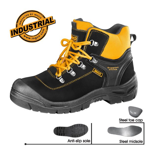Λεπτομέρειες προϊόντος Κατηγορία προστασίας S1P Προστασία δακτύλων και Προστασία πέλματος. Προστασία στο κάτω τμήμα: Ενδιάμεση σόλα, ελαστική, μη θερμική, αντιιδρωτική από συνθετικό ύφασμα ανθεκτικό στη διάτρηση με αντοχή έως 1100N Διπλή Σόλα: Αντιστατική διπλής πυκνότητας πολυουρεθάνη (PU/PU), ανθεκτική στη χημική υδρόλυση κατά ISO 5423: 92. Ανθεκτική στους κραδασμούς και αντιολισθητική – anti-shock + anti-slipping SRC. Με σημείο κάμψης στο μπροστά τμήμα και με κλίση στη φτέρνα που βελτιώνει το περπάτημα. Ειδική προστασία αστραγάλου Ανθεκτικότητα στα λάδια και τα καύσιμα.