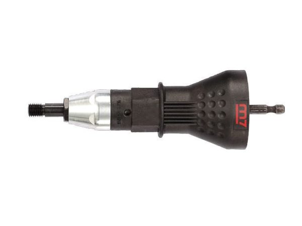 Μετατρέψτε το δράπανο/κατσαβίδι μπαταρίας εύκολα και οικονομικά σε περτσιναδόρο με αυτό το έξυπνο εργαλείο της M7. Με εξάγωνη υποδοχή 1/4″ και εργονομική λαβή είναι ένας αξιόπιστος περτσιναδόρος για περτσίνια με σπειρωμα από M6 έως M10, κατάλληλος για ελαφριές εργασίες. Προσοχή! Κατάλληλος μόνο για περτσίνια αλουμινίου! Τεχνικά χαρακτηριστικά Διαστάσεις 59x180mm Βάρος 350γρ Μήτρες M6,M8,M10 Υποδοχή 1/4″ εξάγωνο Max watt 500 Max rpm 800