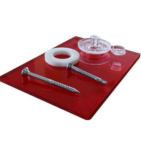 Η βίδα στερέωσης καθώς και η ροδέλα διατίθενται σε διάφορα μήκη, ανάλογα με το πάχος του πολυκαρμπονικού.