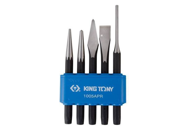 Το 1005APR είναι ένα σετ 5 τεμαχίων από ζουμπάδες και καλέμια. Περιεχόμενο: 76104-05: Ζουμπάς O 4 x 120mm 76215-05: Καλέμι 15 x 125mm 76303-05: Καλέμι 3 x 120mm 76404-06: Ζουμπάς O 4 x 150mm 76505-05: Καλέμι 5 x 130mm Χαρακτηριστικά: Υλικό: Χάλυβας υψηλής αντοχής Επιφάνεια: Μαύρη βαφή Λαβή: Δίχρωμη λαβή από καουτσούκ και πλαστικό για άνεση και έλεγχο Θήκη: Πλαστική θήκη για εύκολη αποθήκευση και μεταφορά Εφαρμογές: Το σετ 1005APR είναι ιδανικό για διάφορες εργασίες χτυπήματος και κοπής, όπως: Γενική επισκευή Κατασκευές Εγκατάσταση DIY projects Χειροτεχνία Πλεονεκτήματα: Κατασκευασμένο από υψηλής ποιότητας υλικά για ανθεκτικότητα και μακροζωία. Ακονισμένη άκρη για καθαρές και ακριβείς κοπές. Εργονομική λαβή για άνεση και έλεγχο. Πρακτική θήκη για εύκολη αποθήκευση και μεταφορά. Πολυχρηστικό σετ για διάφορες εργασίες. Συνολικά, το King Tony 1005APR είναι ένα σετ υψηλής ποιότητας από ζουμπάδες και καλέμια που αποτελεί μια εξαιρετική επιλογή για ερασιτέχνες και επαγγελματίες.