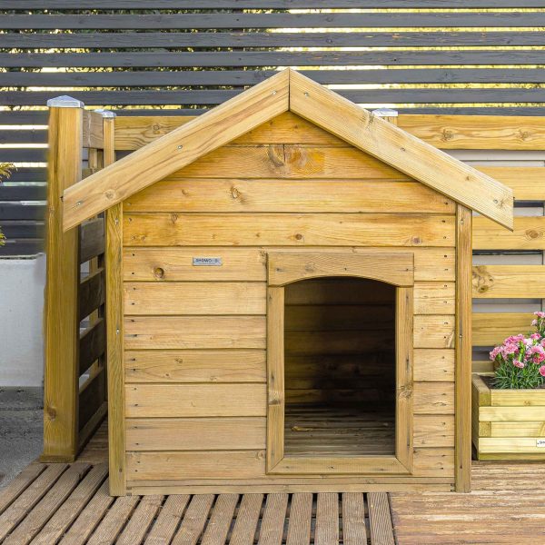 Καλώς ήλθατε στον κόσμο της άνεσης και της προστασίας για τον αγαπημένο σας τετράποδο φίλο! Σας παρουσιάζουμε το ξύλινο σπίτι σκύλου, ένα καταφύγιο κατασκευασμένο από εμποτισμένη ξυλεία για εξωτερική χρήση, που θα προσφέρει ασφάλεια και άνεση στον πιστό σας σύντροφο.