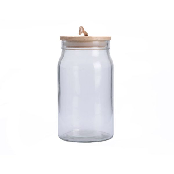 Γυάλινο δοχείο τροφίμων, στρογγυλό με ξύλινο σφηνοειδές πώμα.